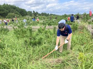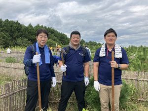 9月28日に、損害保険ジャパン社の代理店会であるJSA中核会千葉支部の社会貢献活動の一環として「損保ジャパン 九十九里浜の森」維持管理活動が開催され、当社からも3名が参加しました。