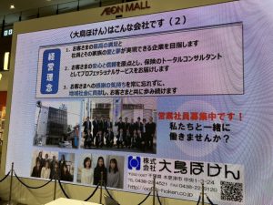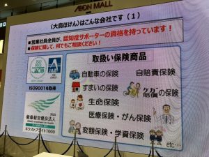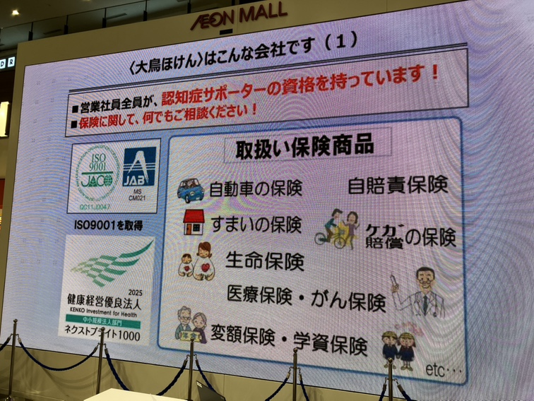 きさらづオレンジフェスタ2025に協賛しました! 2025.10.4 お知らせ Tweet 「きさらづオレンジフェスタ」は、認知症への理解を深めてもらうため、パレードによる啓蒙活動である認知症メモリーウォークと、認知症の方や介護者同士の交流の場である認知症カフェの周知を目的とした認知症カフェフェスティバルの合同企画です。 9月28日に協賛企業のPRスライドがイオンモール木更津サウスアトリウムの大型スクリーンに上映され、当社のスライドも紹介されました。