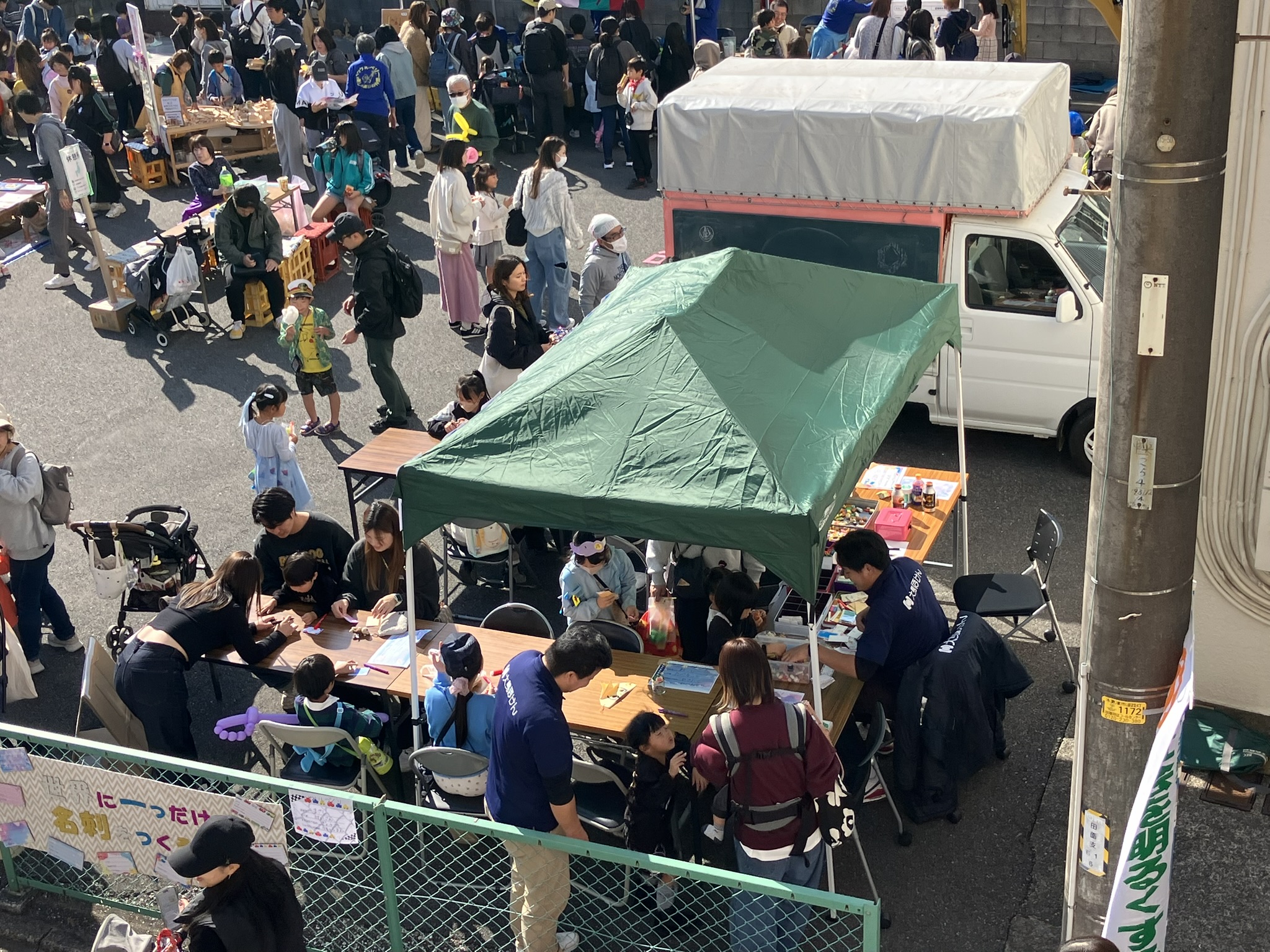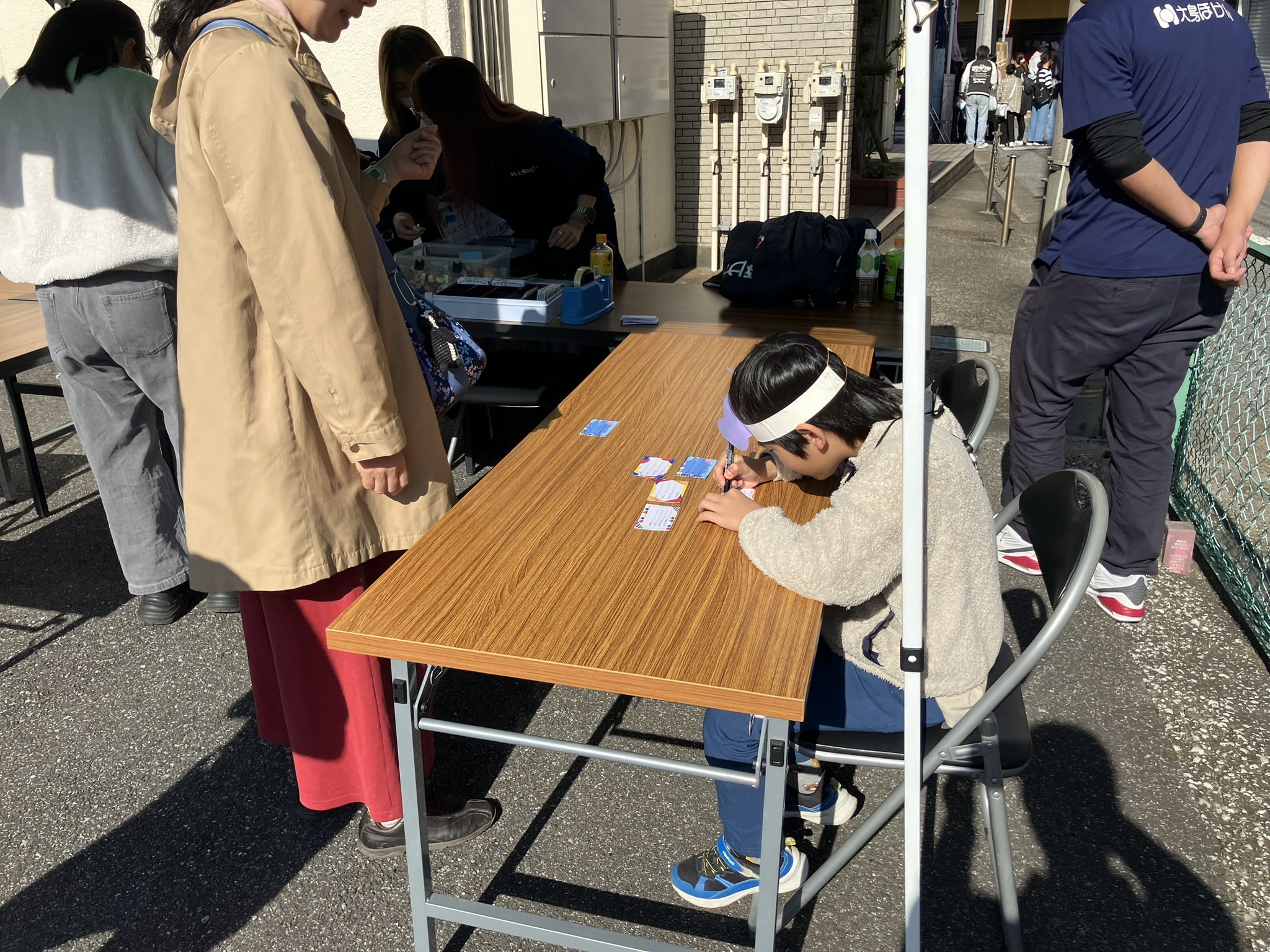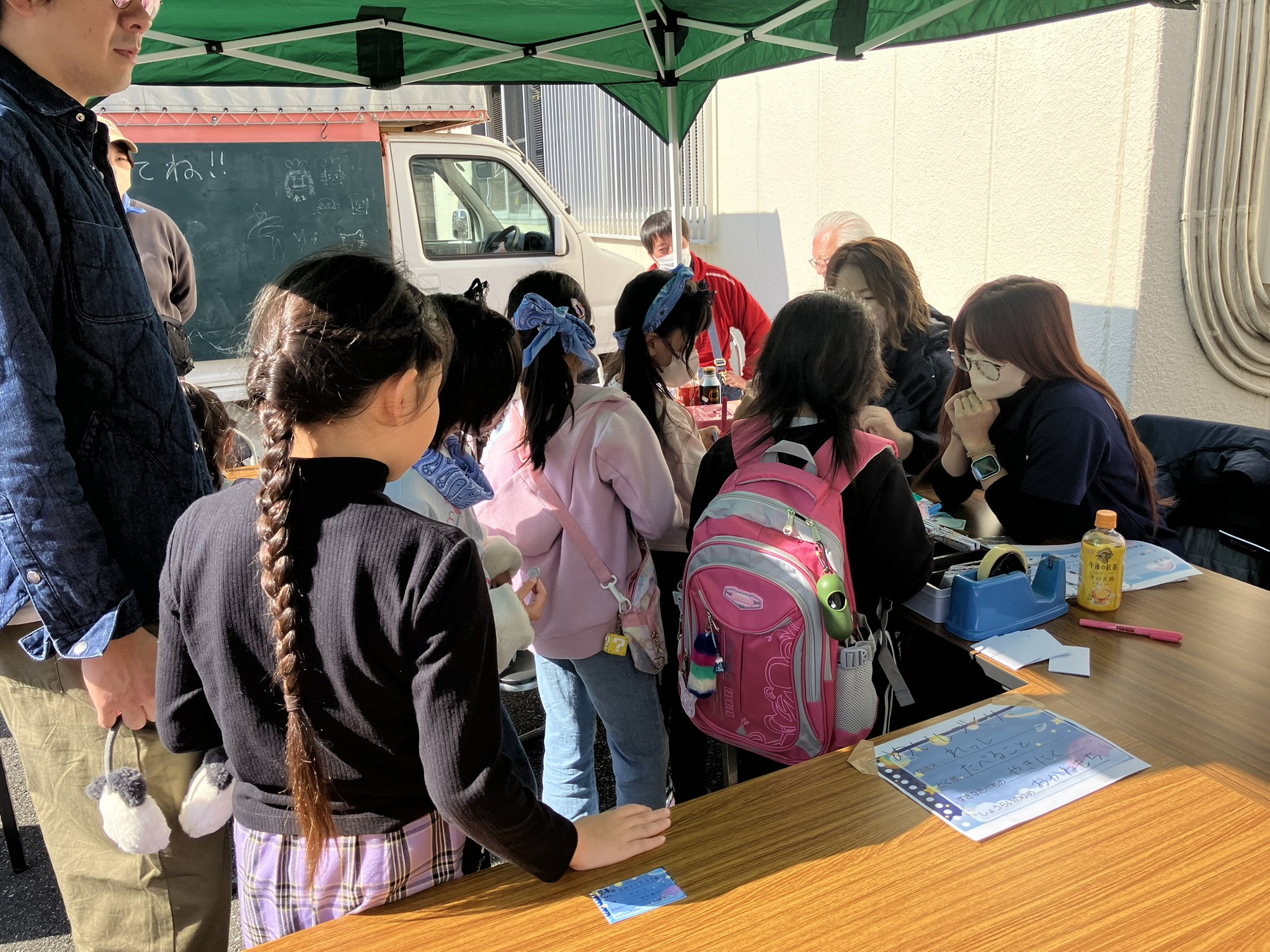 始めは中々人が集まりませんでしたが、用意した100名分に迫る89名のこどもたちが名刺作りを楽しんでくれました。天気も良く、大変楽しいイベントになりました。これからも地域社会に貢献できるよう様々な活動に参加していきたいと思います。