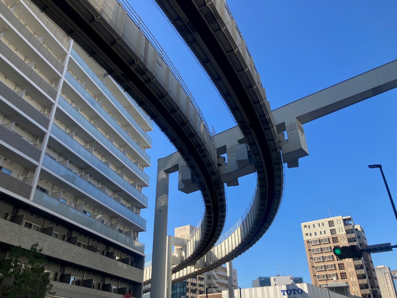 線路から車両が吊り下げられる「懸垂式」は日本に2ヶ所しか採用されていない珍しいモノレールです。