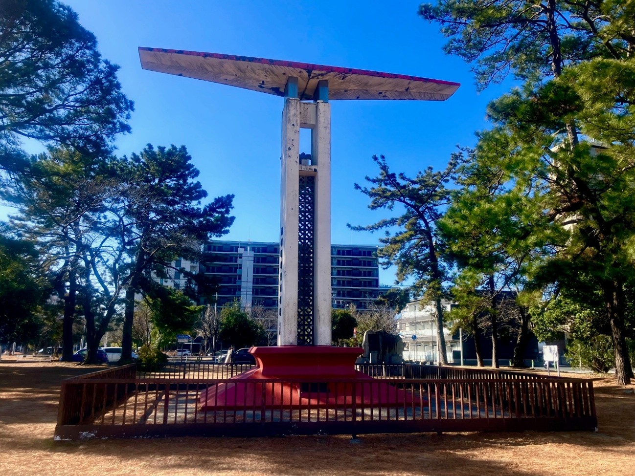 昭和43年まで川崎製鉄千葉製鉄所で使われていた車両を千葉市に寄贈されたそうです。昔、この場所で日本で初の民間飛行場が開設され、その記念碑があります。