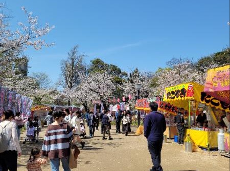 桜が満開で平日にもかかわらず大盛況でした