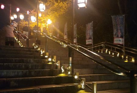 階段の竹で出来たランタンがとても素敵でした
